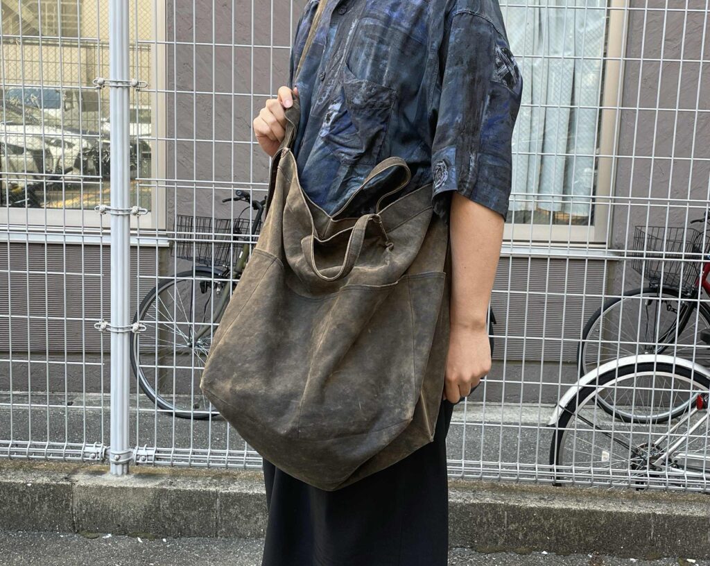 大分県竹田市の作家さんのショルダーバッグです。柿渋染鉄媒染の無骨な風合いがカッコよくて気に入ってます。買ったばかりの時は生地が硬いんですが、使い込んでいくと柔らかくなって色味も落ち着いてきて、育てているような感覚で愛着が湧きます。もちろん大容量で収納力もあるので、機能性も充分です。