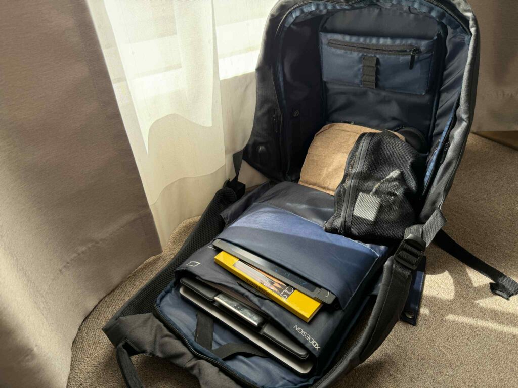 バッグ内の部屋もかなり多くて、小物系の整理もバッチリや。超機能性高いバックパック。