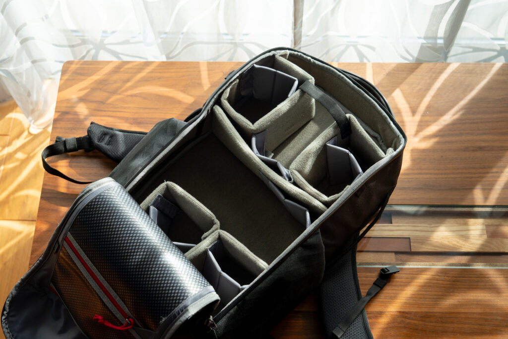 ・カメラ用バックのため、カメラとレンズがめちゃ入る